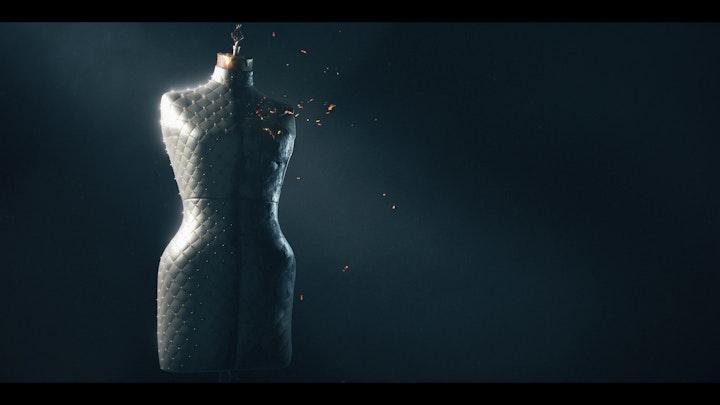The title sequence for Kingdom of Dreams sets the tone and visual language for all of the episodic graphics and visual effects cutaways. The commission was to devise a flexible system of narrative-driven elements that would not only form the show's opening title, but also support the storytelling within the four episodes. This was a considerable challenge as the storyline was one of rich imagery and juxtaposition. In order to answer the brief, we pitched a single, yet iconic fashion element to live at the epicentre of the production and essentially function as the show’s brand – the fashion atelier’s mannequin. One side of which is opulent and bespoke, akin to the haute couture garments of the runways and the other side, is decayed, distressed and ruined, representing the casualties and the damage caused by the pursuit of success.