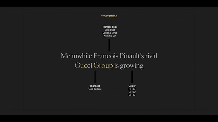 Beginning with the glamour and allure of the industry (represented through the highly decorative and bejewelled mannequin), the sequence meanders through a series of metaphors, seamlessly joined together using fine details, silhouettes, and subtle animations, taking the viewer on a dramatic visual journey of the rise and fall, as choreographed in the production. The title concludes by returning to the mannequin, though this time revealing the contrasting effect of global domination and greed, leaving its condition in tatters.